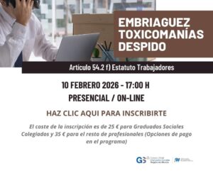 El día 10 de febrero de 2026 tendrá lugar la jornada sobre Embriaguez, toxicomanías y despido.