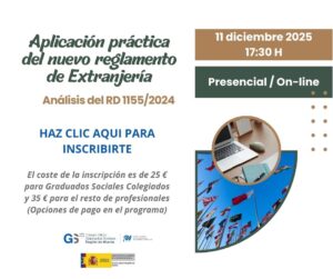 El día 11 de diciembre de 2025 tendrá lugar la jornada sobre Aplicación práctica del nuevo reglamento de Extranjería» Análisis del RD 1155/2024.