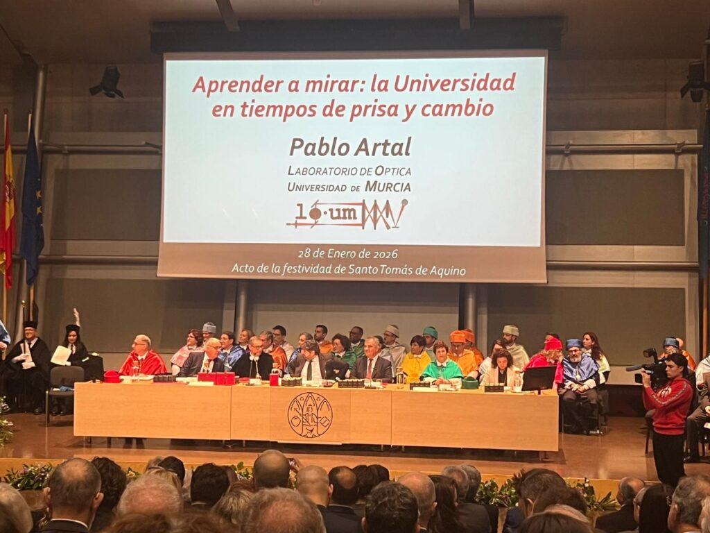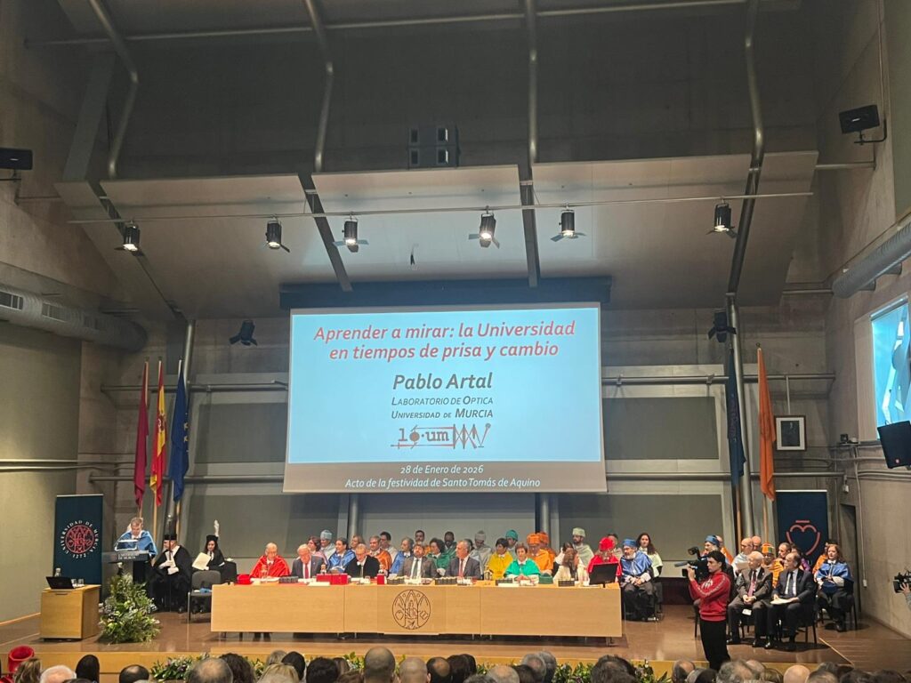 El miércoles 28 de enero de 2026, nuestro decano asistió a la celebración de la Festividad de Santo Tomás de Aquino, que tuvo lugar en el salón de actos de la Facultad de Economía y Empresa, en el Campus de Espinardo de la Universidad de Murcia. Este acto, de gran relevancia académica y social, reúne cada año a representantes del ámbito universitario y de la comunidad regional para reconocer la excelencia y la dedicación en la vida universitaria.
