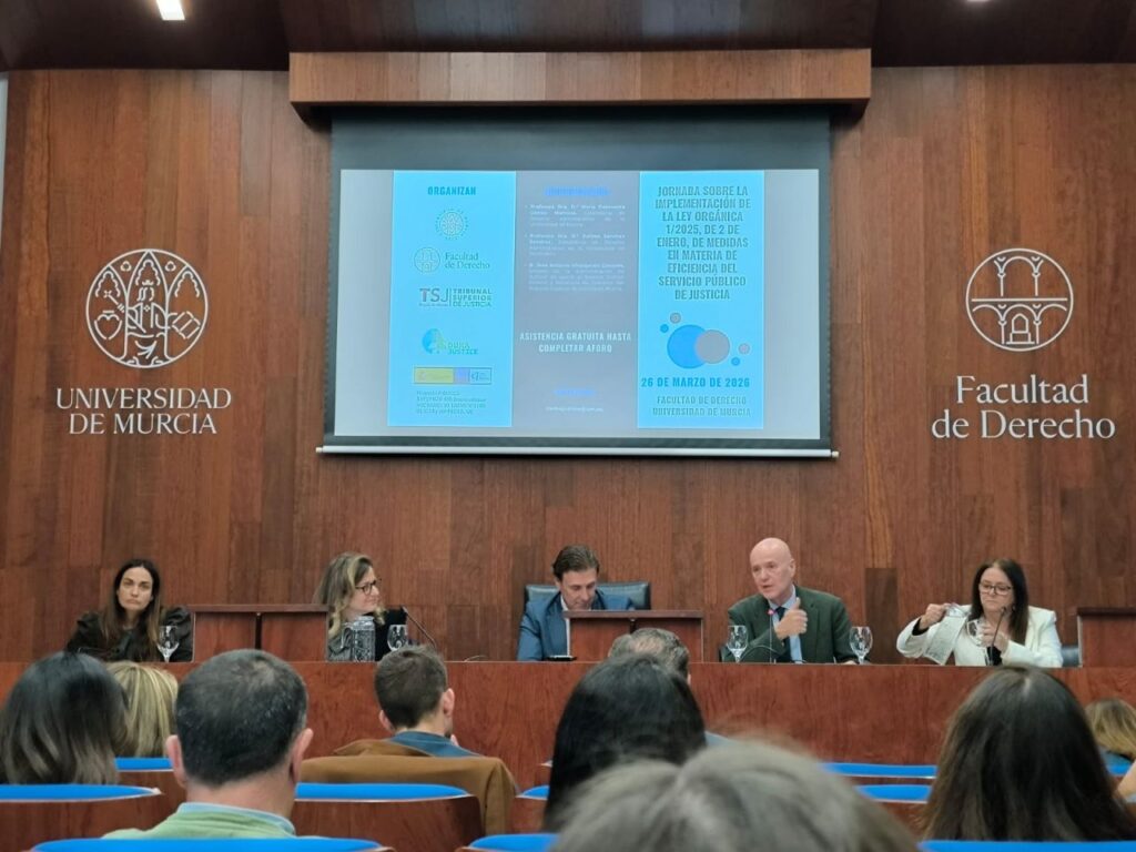 El 26 de marzo de 2026, asistimos a la jornada sobre la Ley de Eficiencia de la Justicia (LO 1/2025) en la Universidad de Murcia, a la que asistió Salvador García  representando a nuestra Junta de Gobierno.
