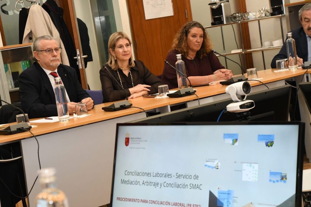 El 27 de enero de 2026, nuestro decano, D. Alfonso Hernández, fue invitado por el director general de Trabajo, D. Juan Marín Pérez, al acto de presentación del nuevo procedimiento electrónico para conciliaciones laborales, que representa un importante avance en la modernización y digitalización del Servicio de Mediación, Arbitraje y Conciliación (SMAC) de la Región de Murcia.