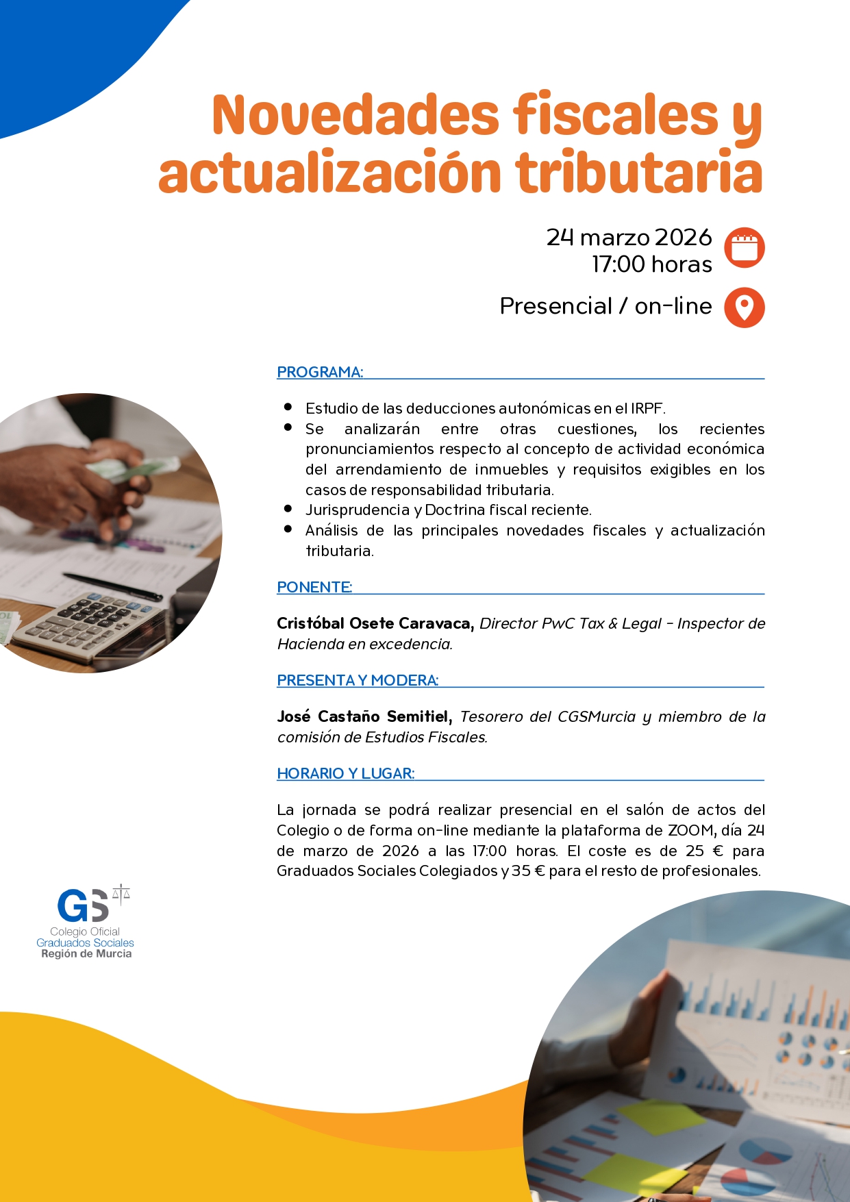 Presenta y modera: José Castaño Semitiel, Tesorero del CGSMurcia y miembro de la comisión de Estudios Fiscales.